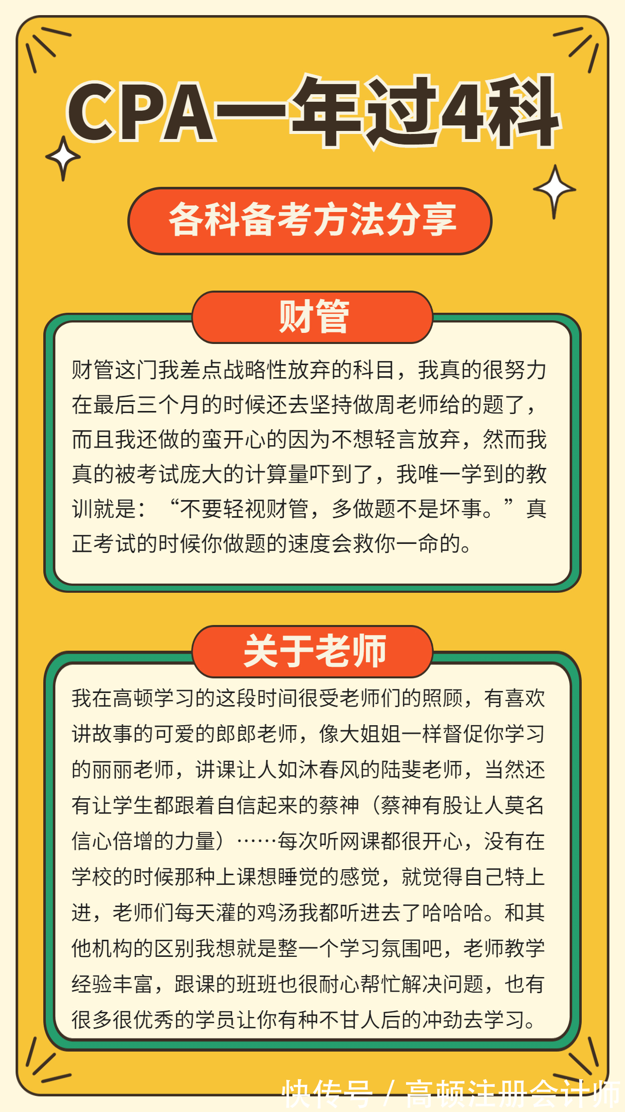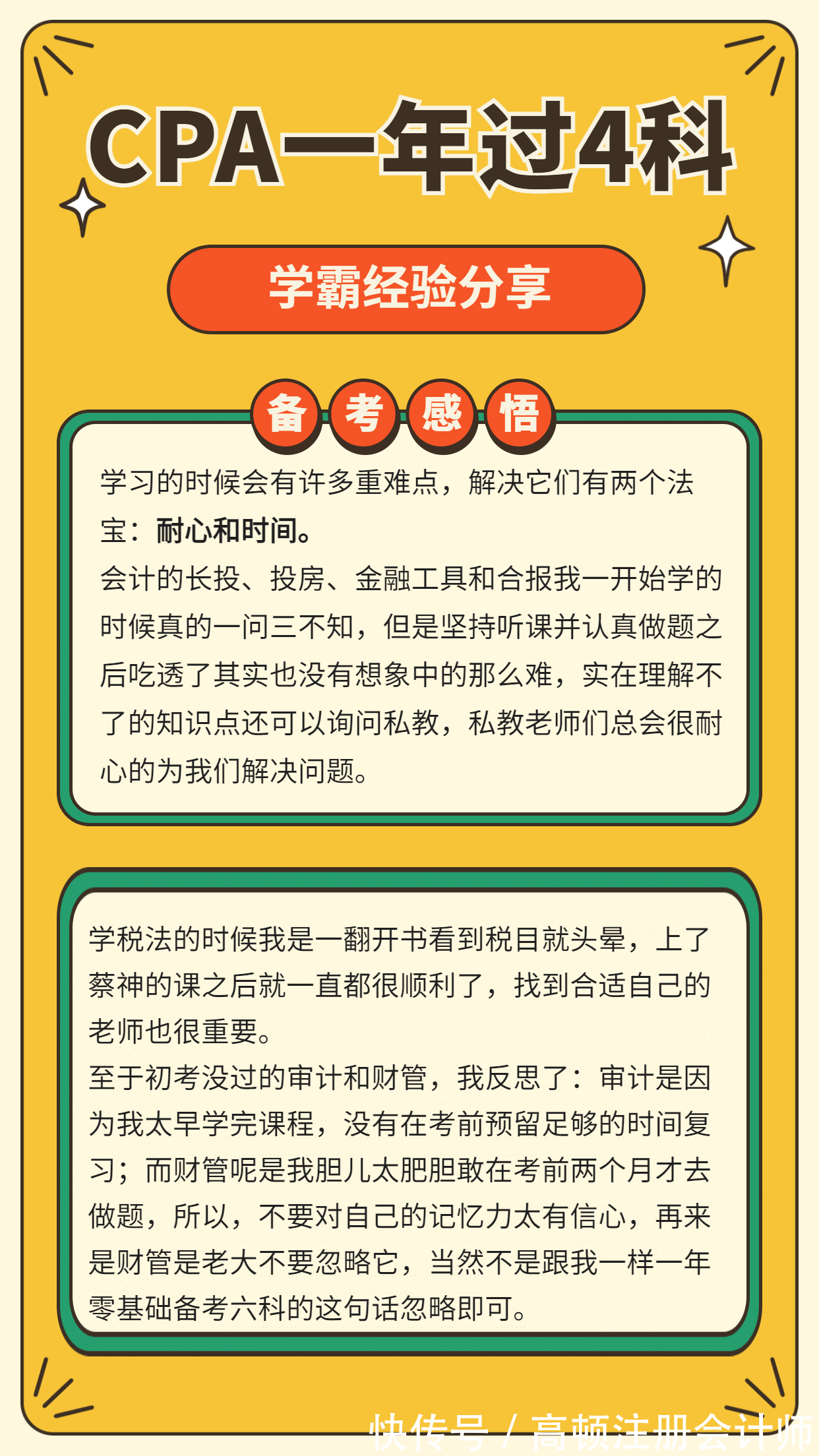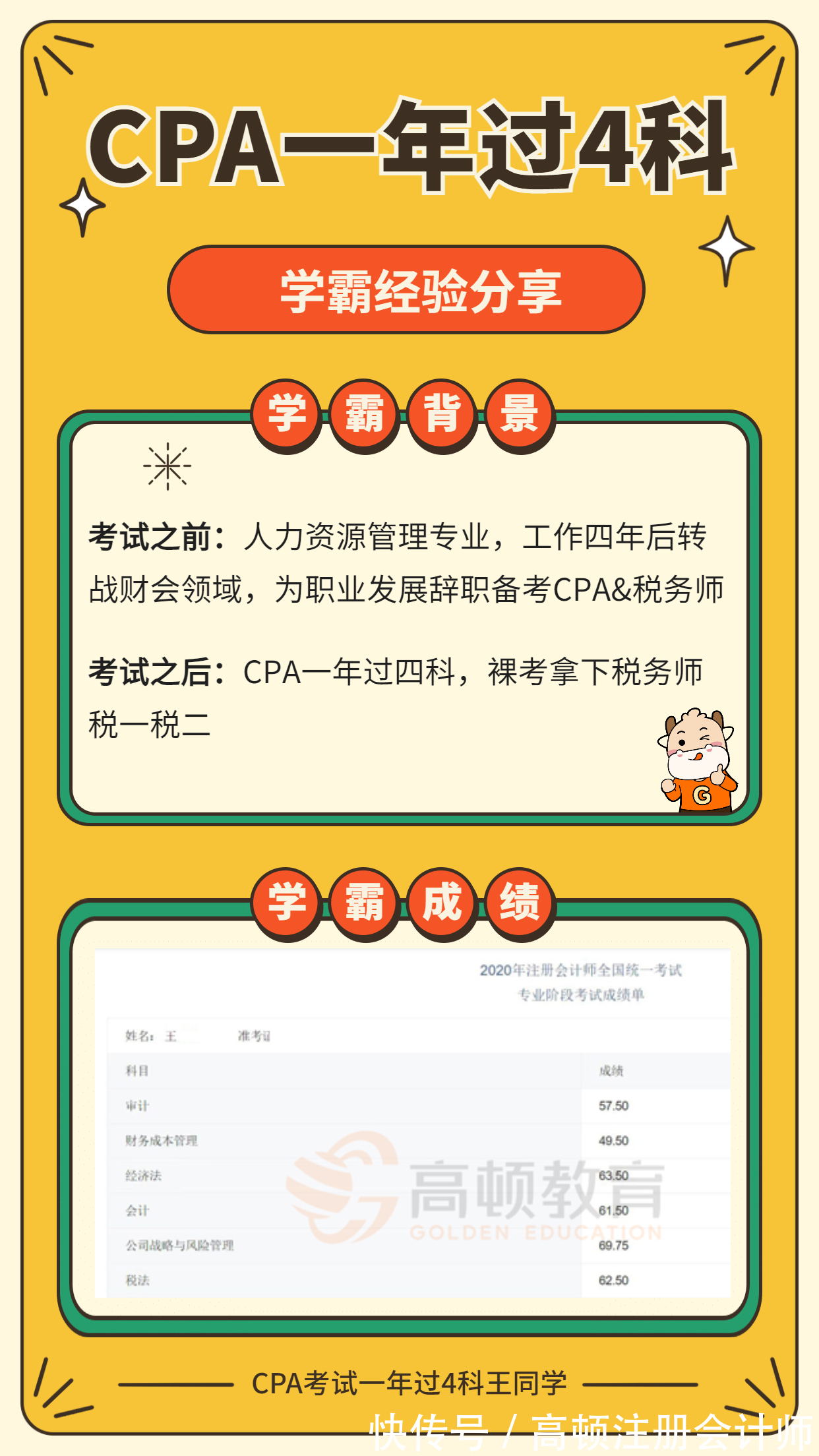 学霸背景大学人力资源管理专业毕业,工作四年后转战财会领域,报考CPA一次性拿下4科!